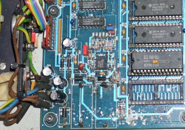 This shows part of the PCB of one of the Direct units, lots of corrosion. The batteries have been removed, but before that, they leaked and caused damage to various parts of the board. It is, at this stage, still repairable.