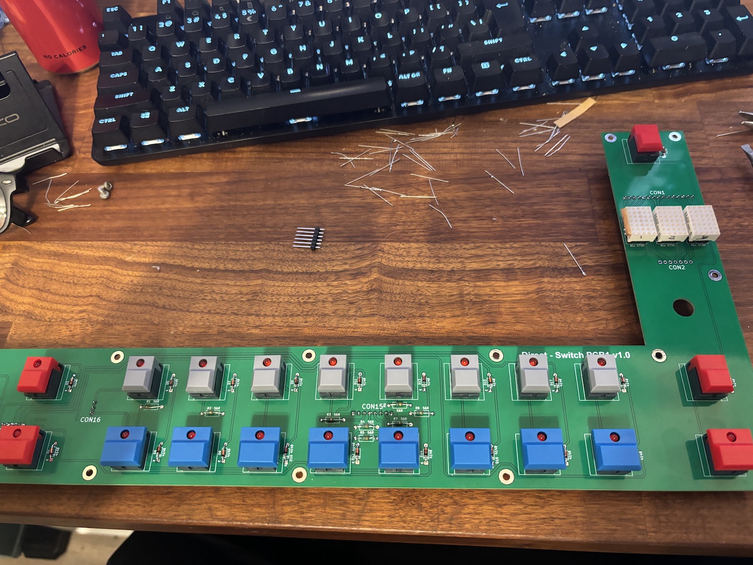 I build it up with the switches, diodes, resistors and new extra long header pins.